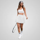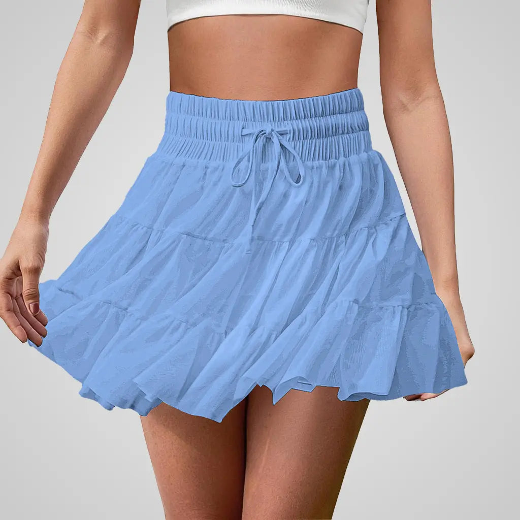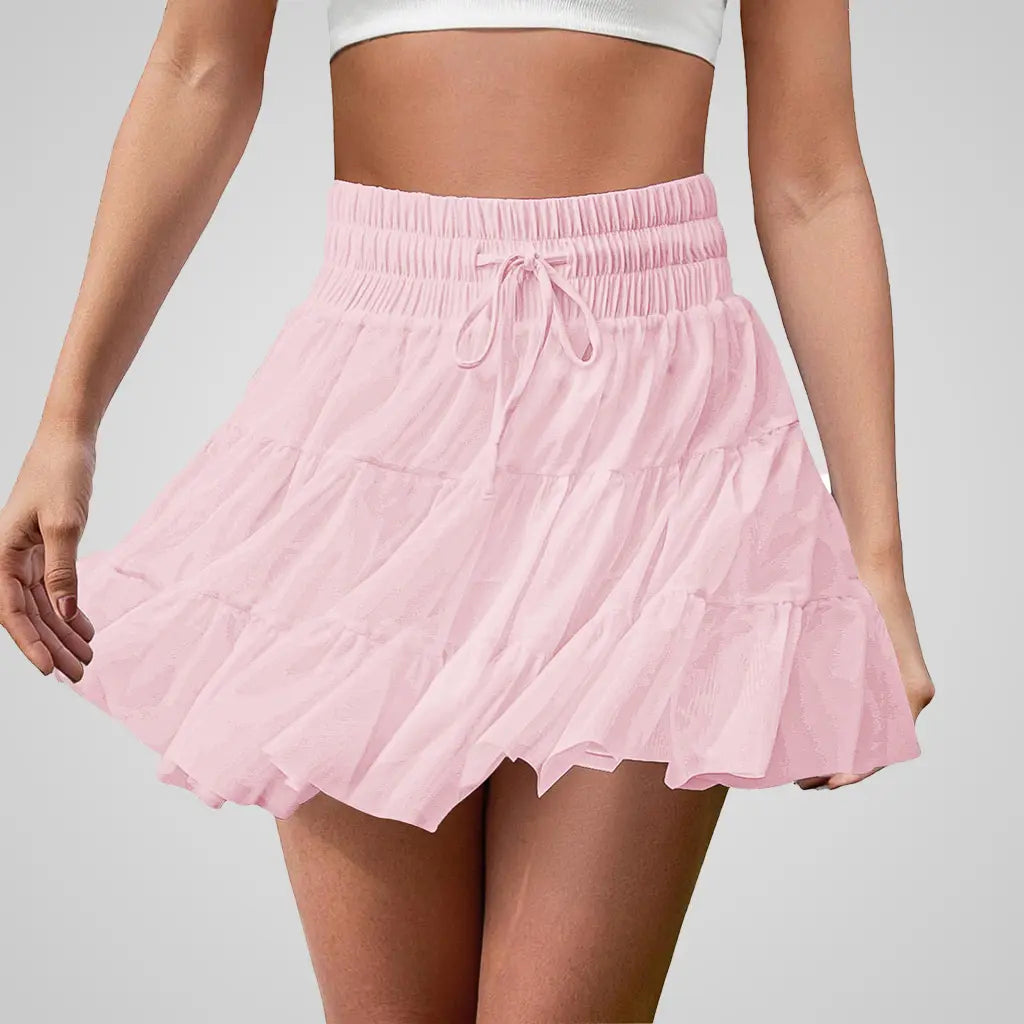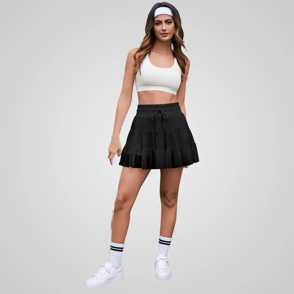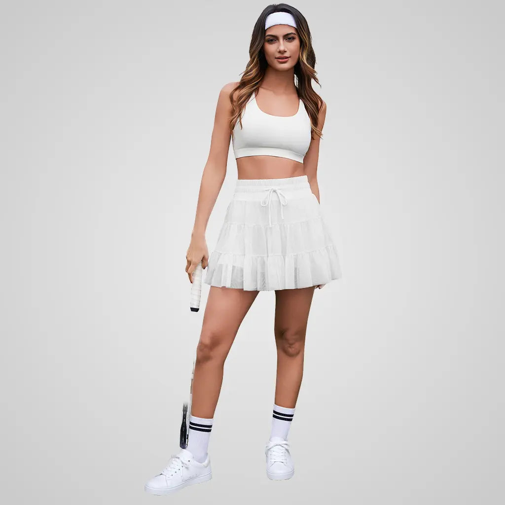 Elevate your athletic elegance with FireSwan’s Tennis Skirt, where fashion meets function effortlessly. Designed for dynamic movement and style, this high-waisted skort features a flowing pleated tulle overlay and a secure built-in shorts lining. With hidden pockets and a flattering ruffled hem, it keeps you comfortable and chic on the tennis court, golf course, or everyday adventures. Pair it with your favorite activewear tops for a versatile look that transitions seamlessly from sports to casual outings.