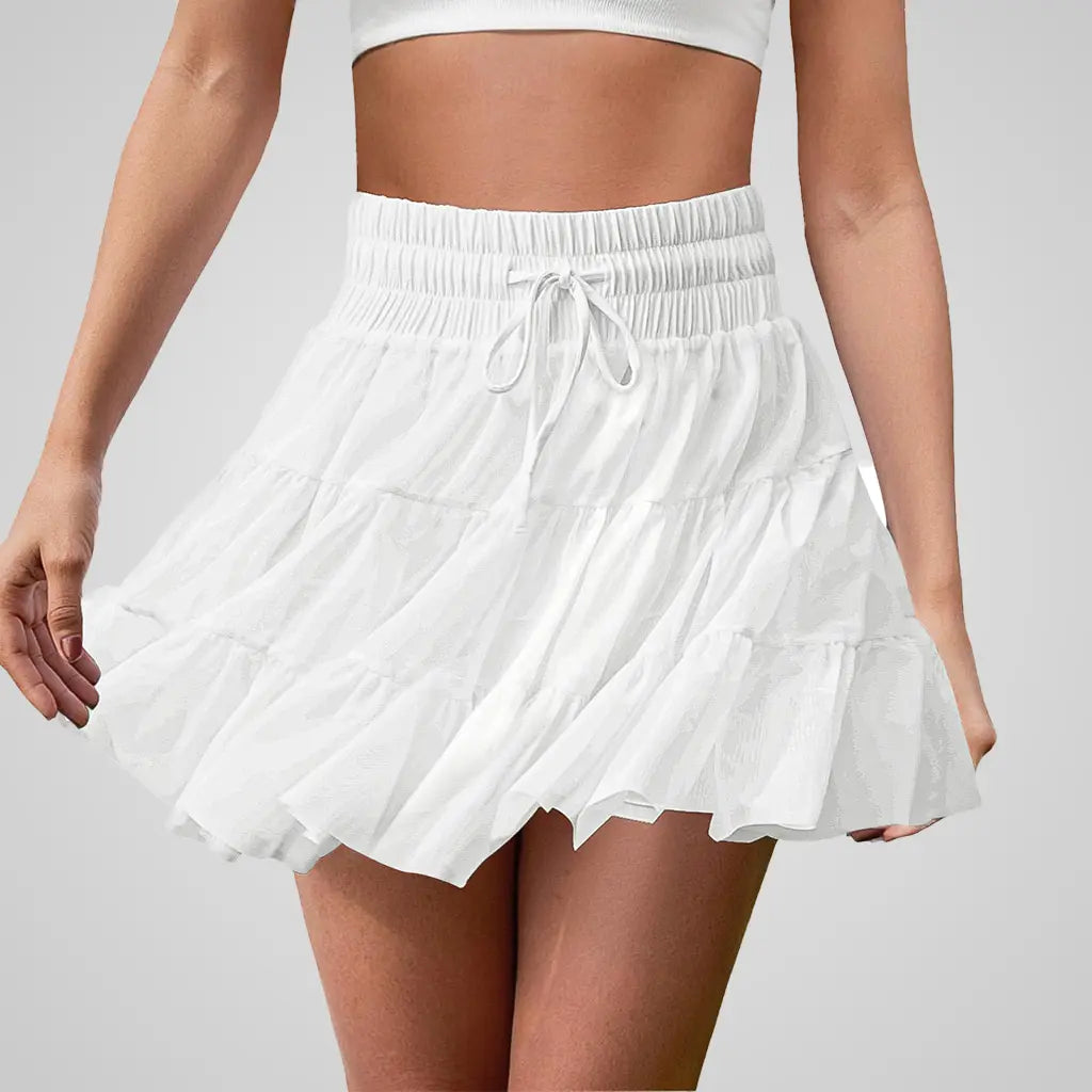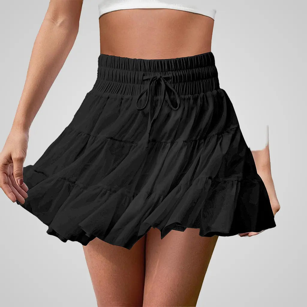 • High-Waisted Design with Elastic Closure: Provides a customizable and supportive fit, accentuating your silhouette with a trendy ruffled “cake skirt” style.