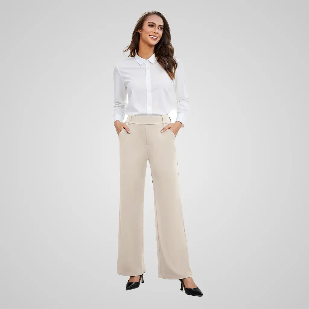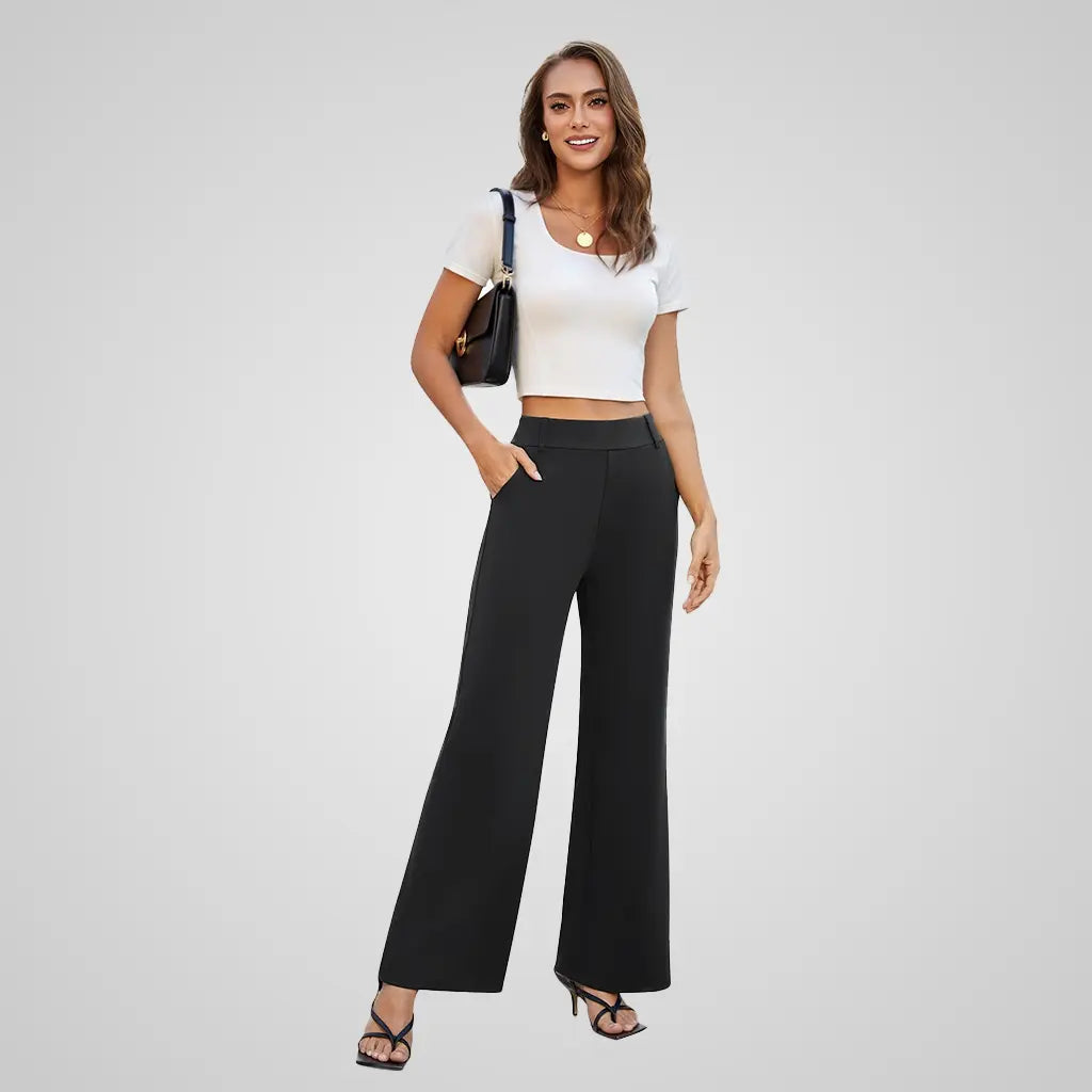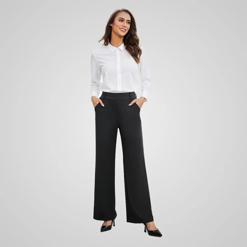 Step into effortless sophistication with the FireSwan Women’s Wide Leg Dress Pants. Crafted from a stretchy polyester-spandex blend, these high-waisted trousers offer a flattering fit while keeping you comfortable all day. The classic business style features belt loops, a faux fly design, and a wide-leg cut that elongates the silhouette. With practical side pockets and a versatile design, these pants transition seamlessly from office to casual outings—your new go-to for modern business casual style.