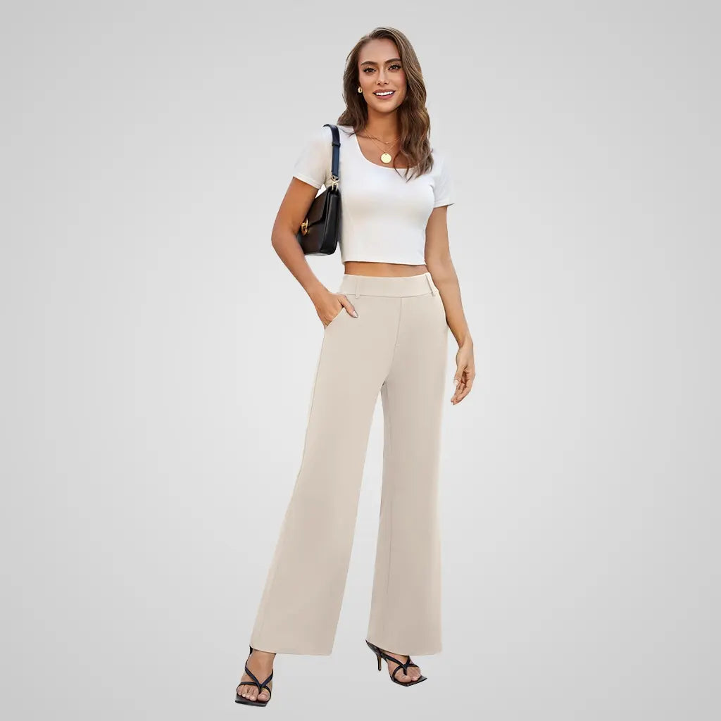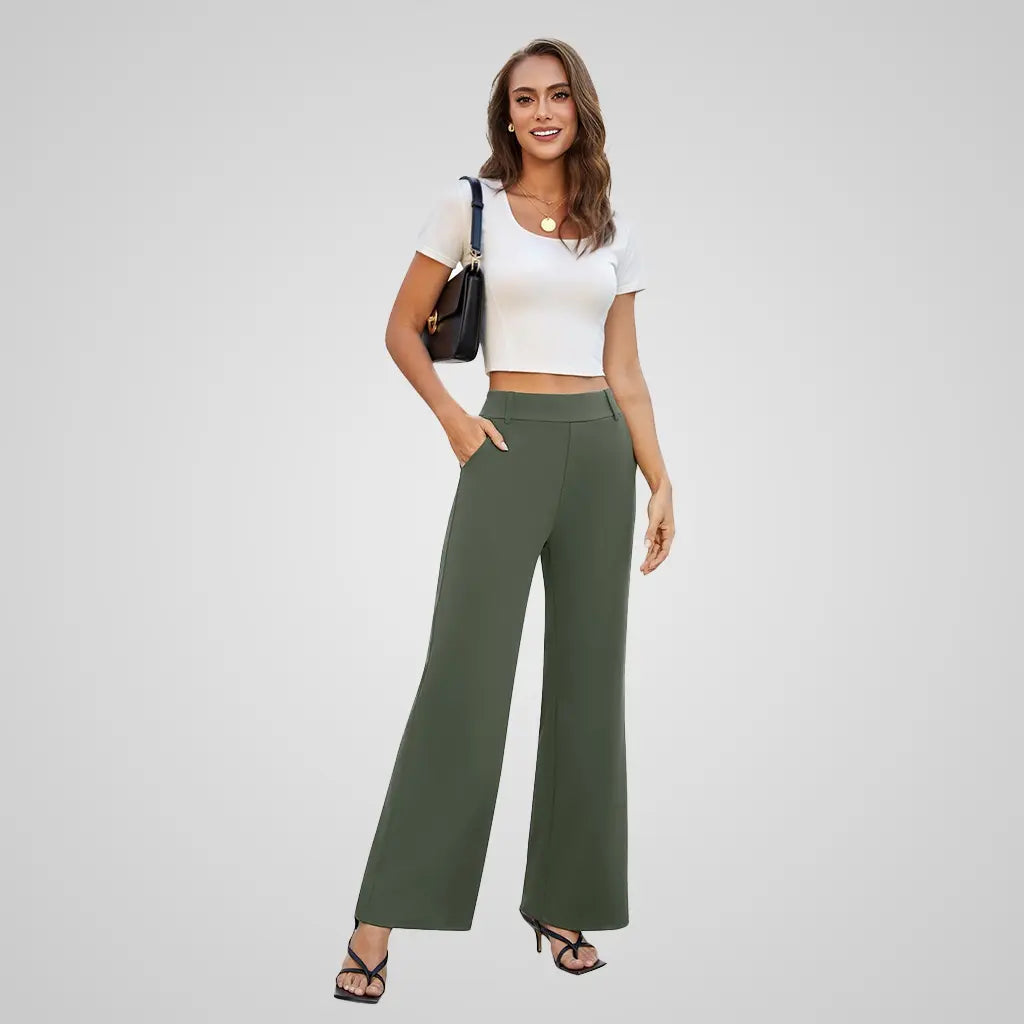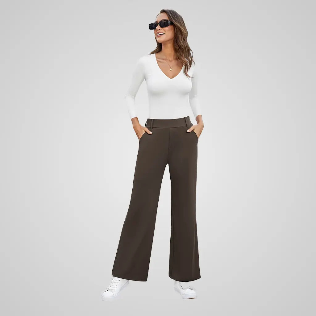 Step into effortless sophistication with the FireSwan Women’s Wide Leg Dress Pants. Crafted from a stretchy polyester-spandex blend, these high-waisted trousers offer a flattering fit while keeping you comfortable all day. The classic business style features belt loops, a faux fly design, and a wide-leg cut that elongates the silhouette. With practical side pockets and a versatile design, these pants transition seamlessly from office to casual outings—your new go-to for modern business casual style.