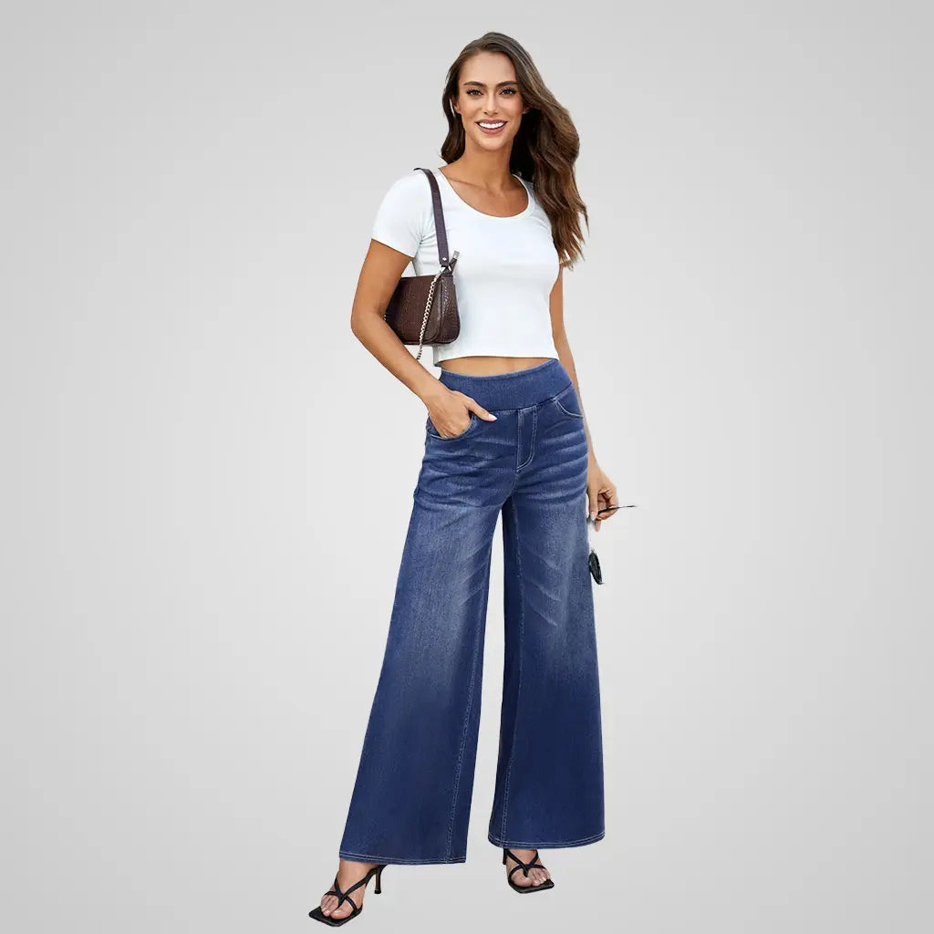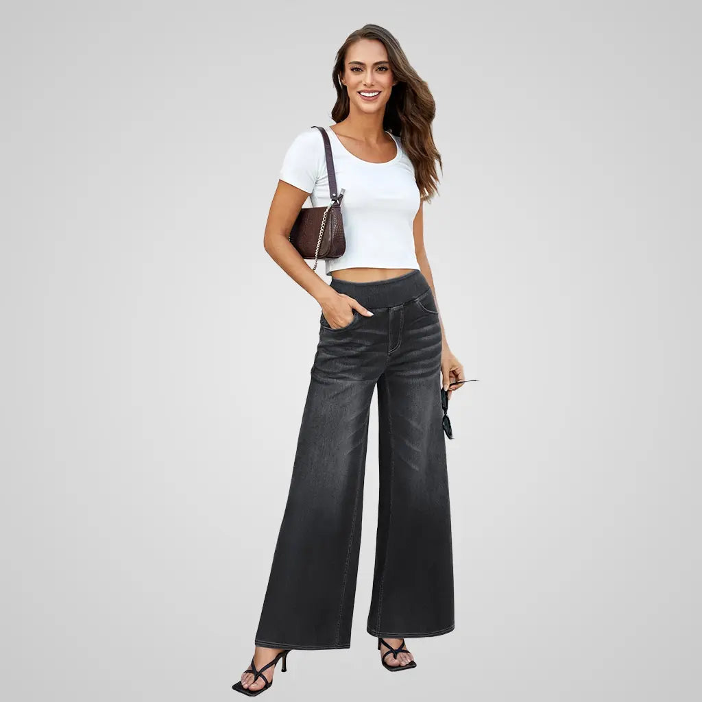 Effortlessly blend comfort and style with these High Waisted Wide Leg Denim Joggers. Designed with a soft elastic waistband, figure-flattering high rise, and relaxed wide-leg cut, they deliver the perfect mix of denim chic and sweatpant ease. From casual days to night-out looks, these versatile pull-on jeans move with you—keeping you confident, comfortable, and stylish no matter the occasion.