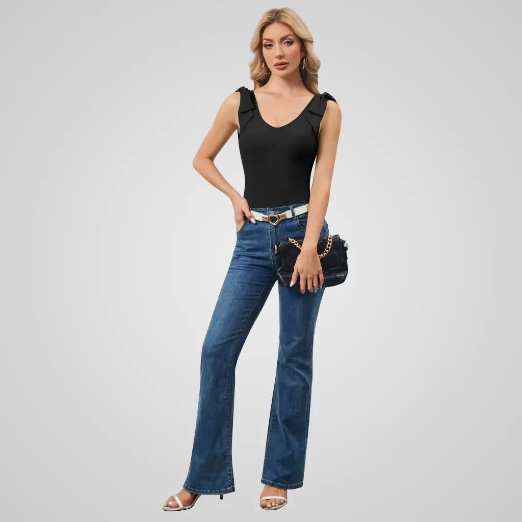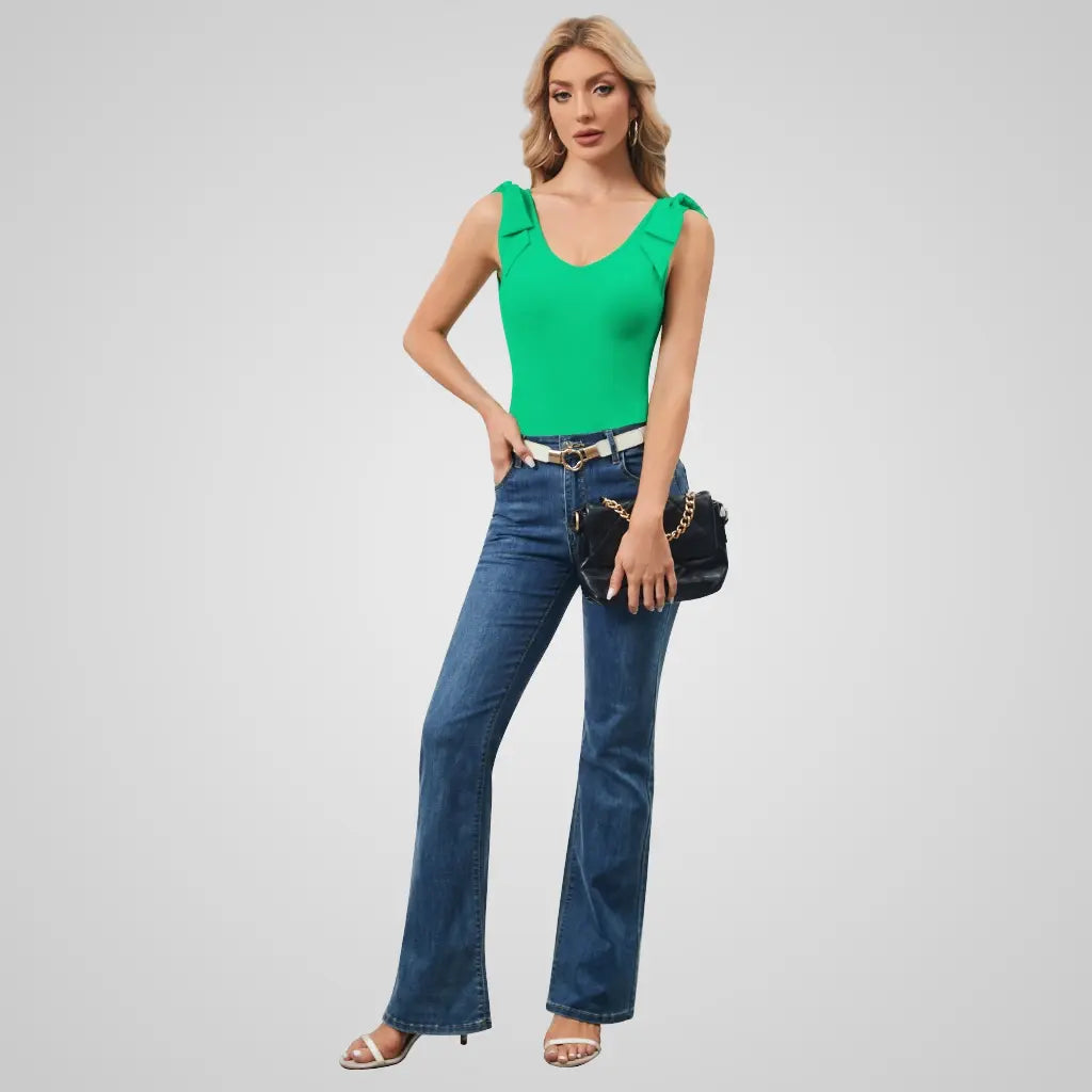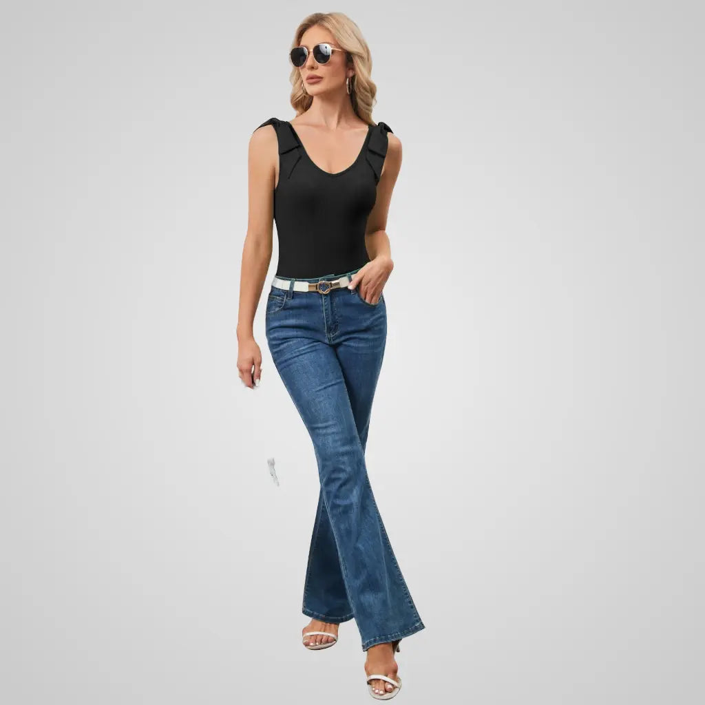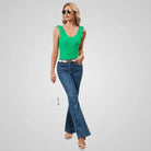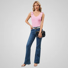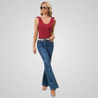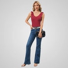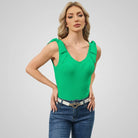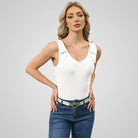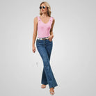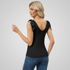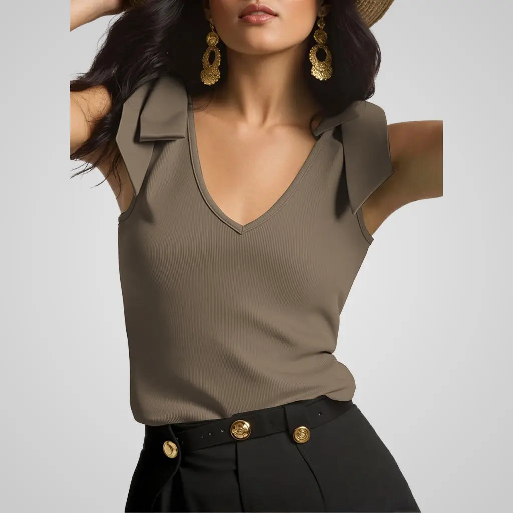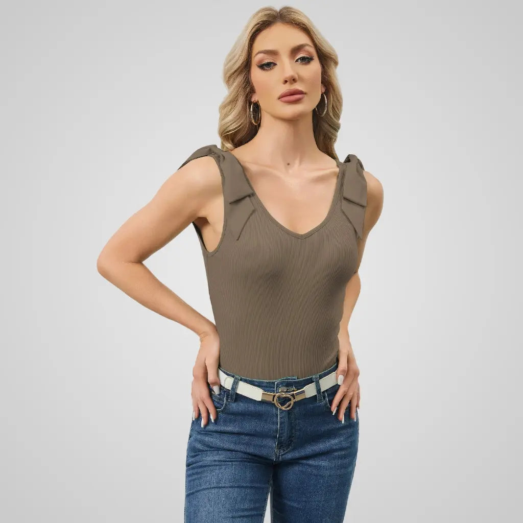 Stay effortlessly chic this summer with the FireSwan Women’s V-Neck Bow Tie Shoulder Tank Top. Crafted from a soft rayon-cotton blend with a touch of stretch, this ribbed knit camisole hugs your shape while keeping you comfortable all day. The playful pre-tied bow shoulder straps add a cute, feminine touch, while the sexy deep V-neckline gives it a trendy edge. Perfect for pairing with denim shorts, skirts, or high-waist pants, this sleeveless knit top is your go-to for vacations, casual days, date nights, and summer parties.